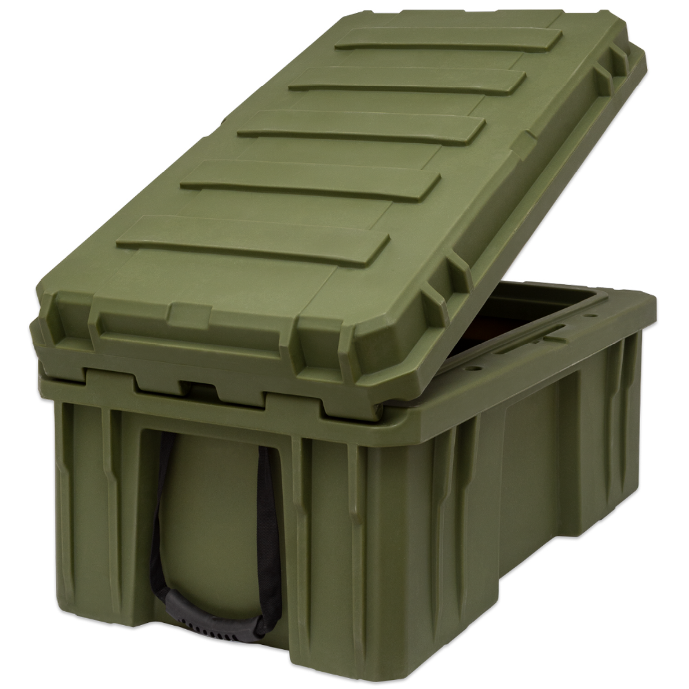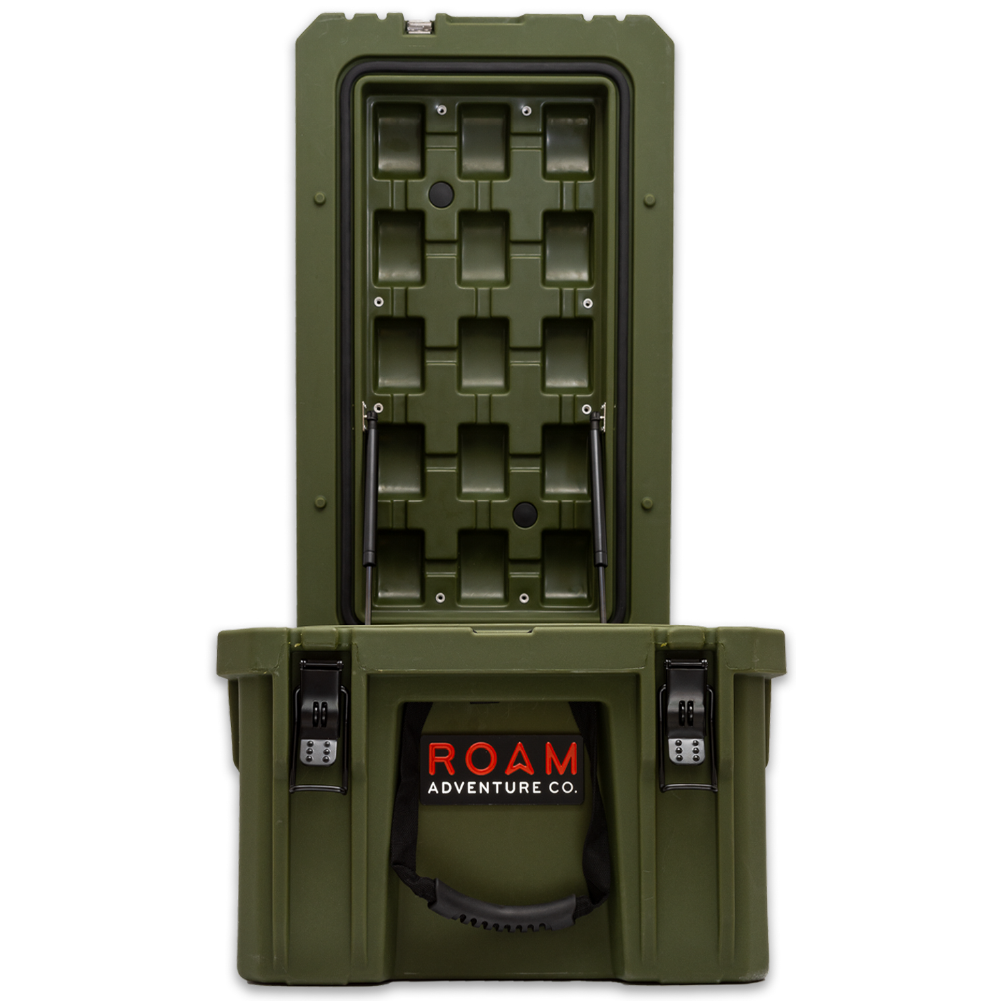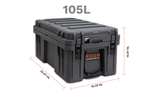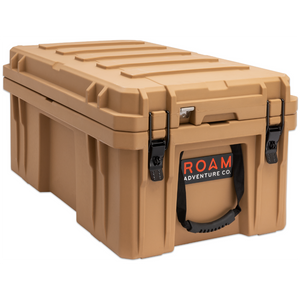 The ROAM 105L Rugged Case is a heavy-duty storage case that comes in 4 color options and is ideal for storing larger camp equipment, stoves, sleeping gear, or recovery gear. Perfect for the trunk of a 4Runner/SUV or the back seat of a truck. This premium case features a durable LLDPE shell, Nylon rope handles, steel lockable latches, and a dust/waterproof gasket seal that makes sure your gear always stays protected no matter the terrain. Having an interlocking design makes stacking and pairing simple no matter the amount of gear you carry.