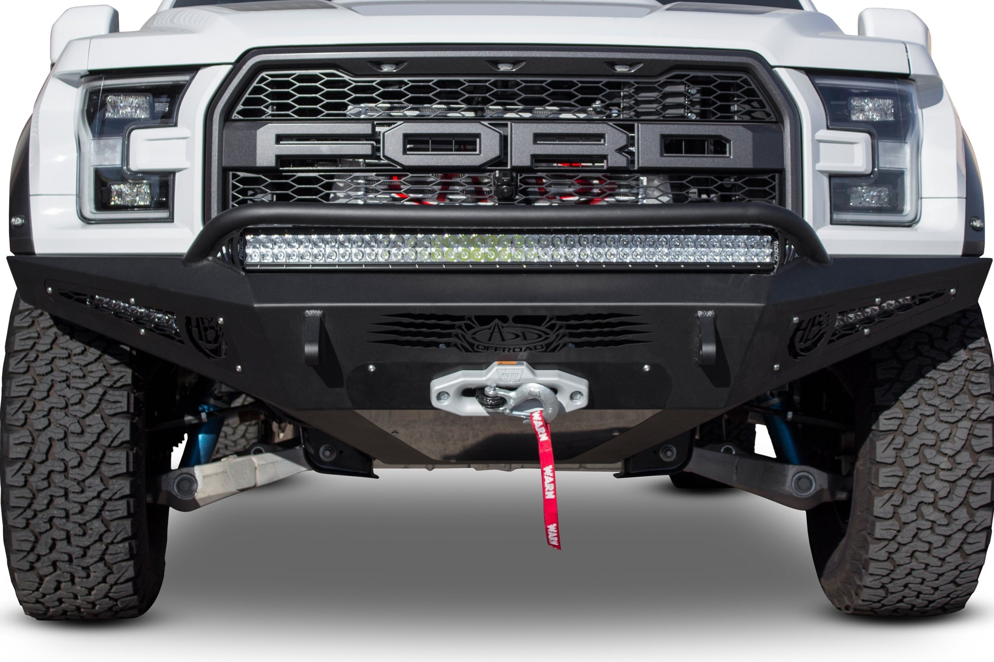 Take your Ford Raptor to the next level with the HoneyBadger Front Bumper from Addictive Desert Designs. This bumper is made with tough 1/8" external steel plating and a removable 1/8" aluminum skid plate and accent panels, so you know it can take a beating. It also has an aggressive style that really makes your truck stand out from the crowd. Plus, the reinforced clevis mounts are designed to accommodate soft shackles, so you can be sure your truck is properly protected in the event of an accident.