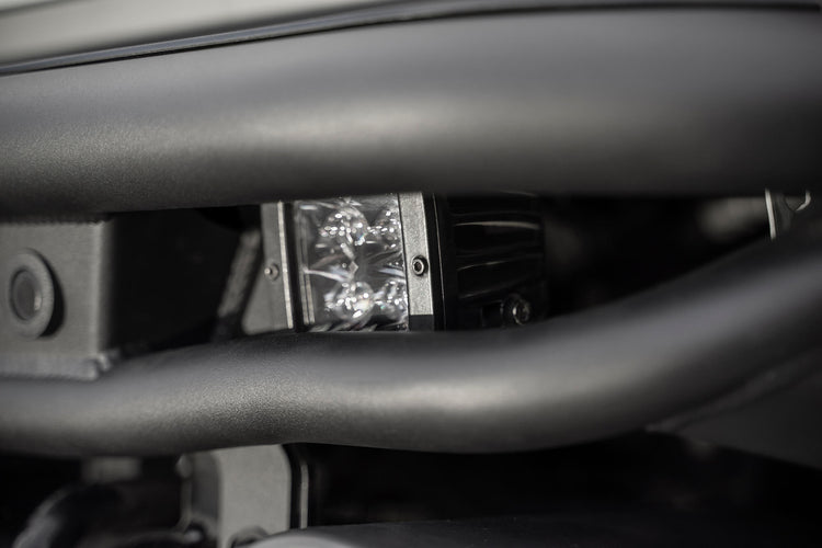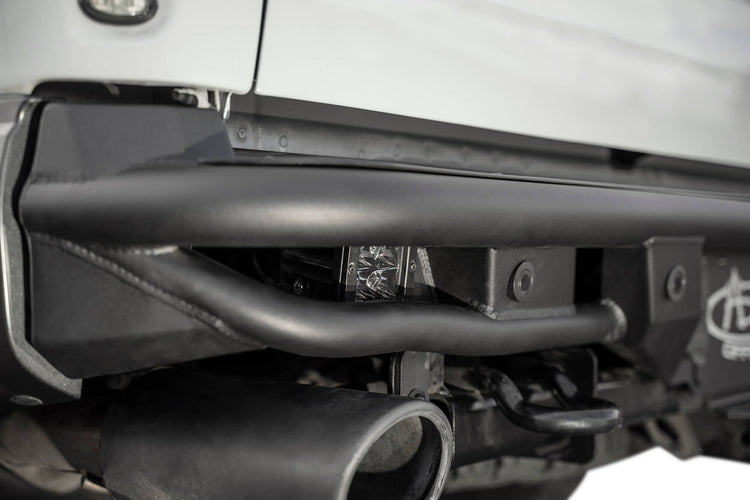 The ADD PRO Bolt-On rear bumper retains the OEM hitch functionality and includes mounts for two rear facing cube lights for additional lighting.