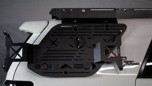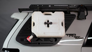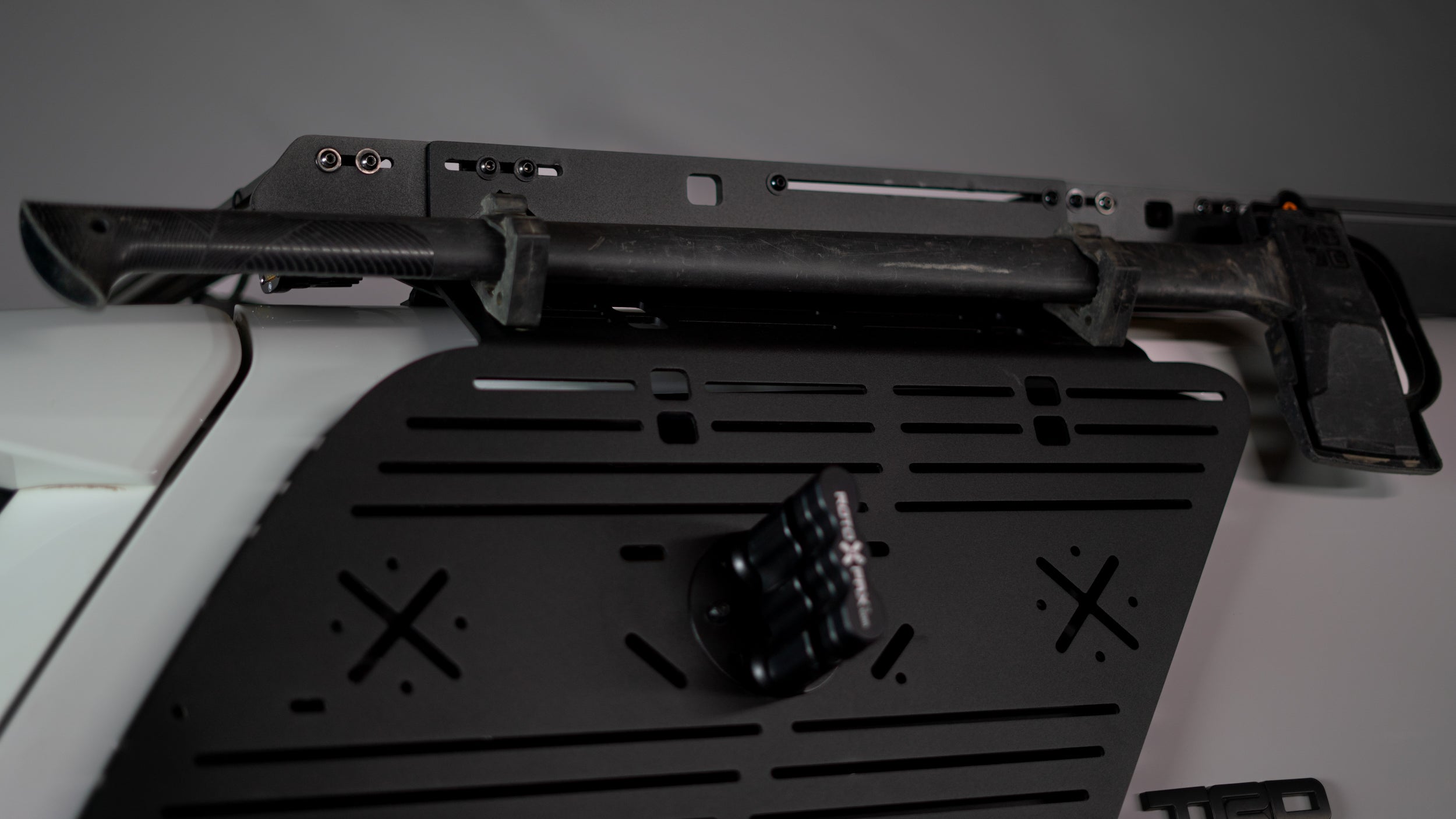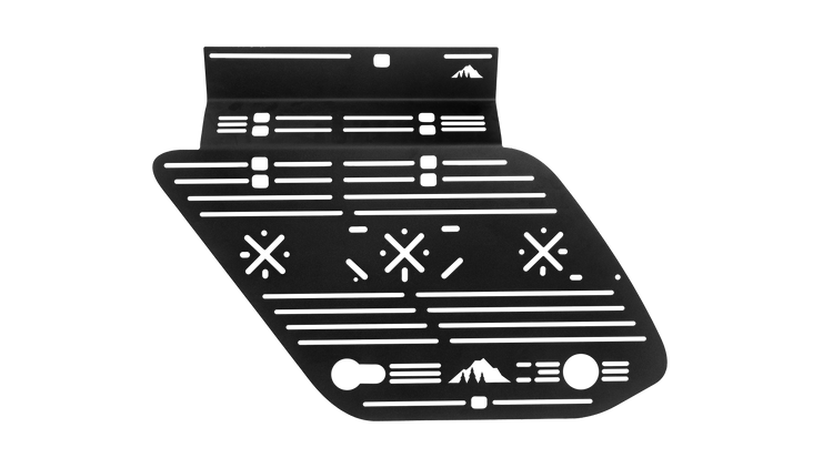 A new way to mount your essential gear for easy access and more storage. Made out of 3/16 aluminum, this lightweight yet strong panel allows you to add convenient mounting options to the side of your vehicle. Perfect to mount your recovery gear, fuel, water, shovel, axe, first aid kit, or nearly anything that can be bolted or strapped down. Compatible with most standard awnings using Sherpa Awning Mounts. Designed to match the window shape of your 4Runner, this bolts to your Crestone or Needle rack at the top and suctions to the window at the bottom. No drilling or other modifications are necessary.