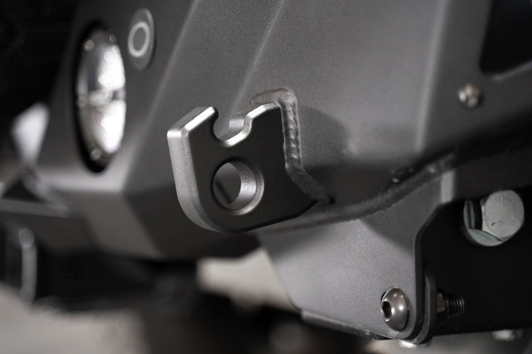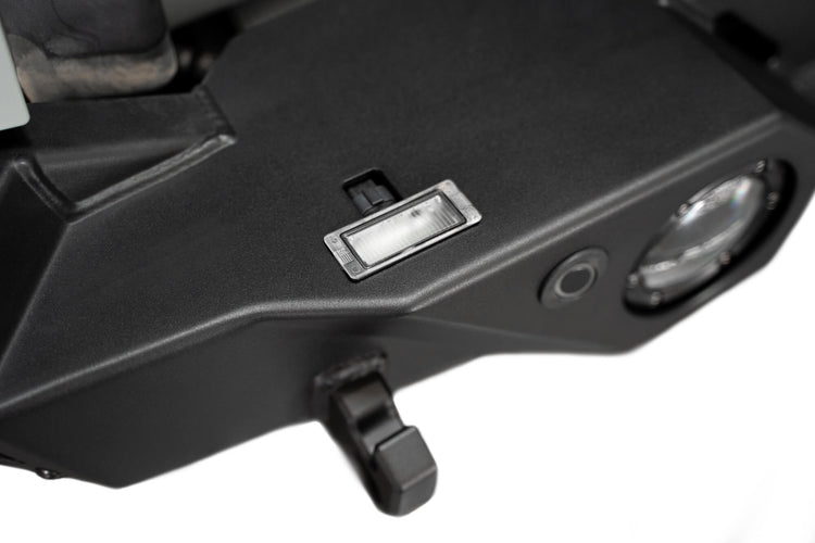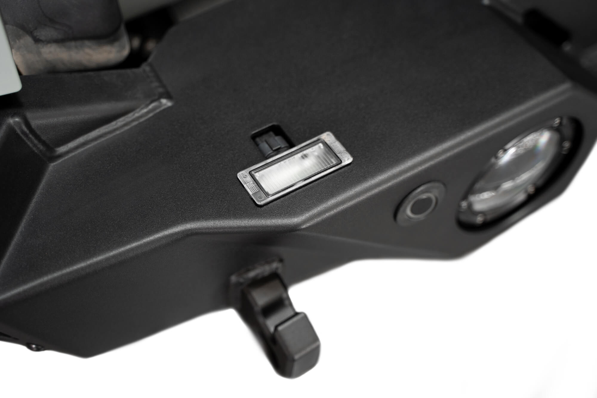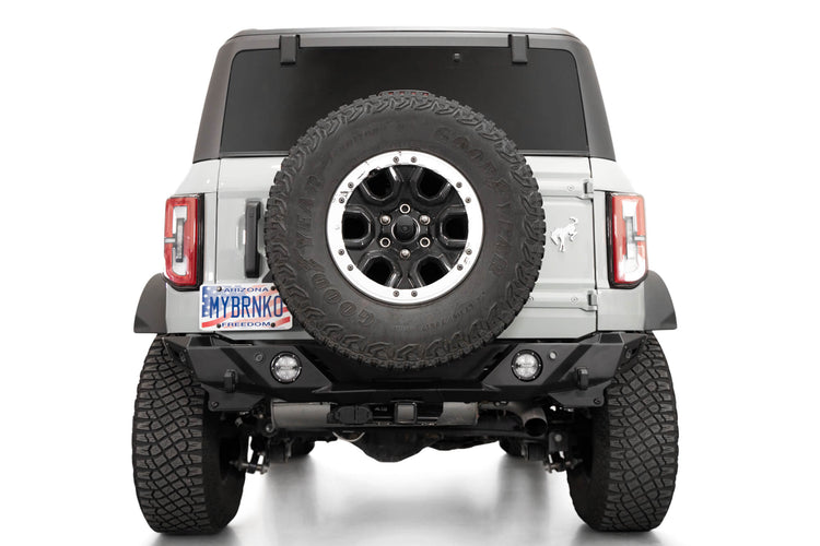 Designed to tackle the most challenging off-road trails, the Krawler Series Bronco Rear Bumper is a combination of durability, functionality, and thoughtful engineering. Its low profile fitment and modern plate steel construction is well suited for rock crawling. Two 3-4 inch round light mounts provide options for supplemental rear lighting. The Krawler accommodates the OEM Tire Mount & back-up camera, as well as the factory hitch and trailer harness. Included with the bumper is a 3rd brake light extension bracket compatible with up to a 37-inch spare tire, and a license plate relocation bracket that mounts to the carrier.