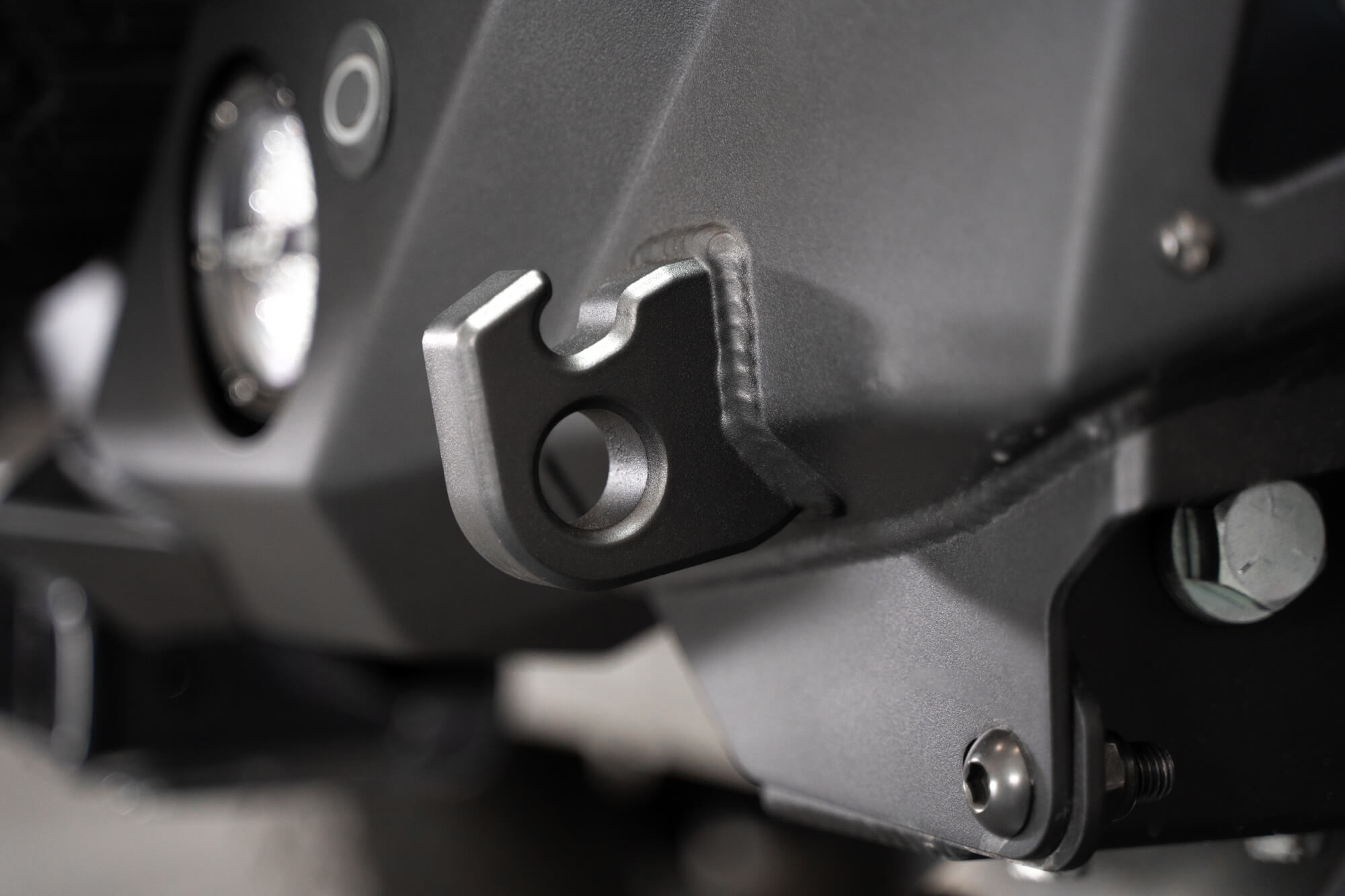 Recovery options include heavily reinforced clevis mounts for ¾-inch D-ring shackles. The Krawler Bronco rear bumper is finished in a hammer black powder coat, while its aluminum accent panels are finished in a satin black powder coat. As always, this is fully bolt-on and made in America.