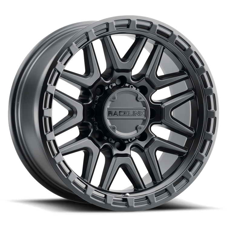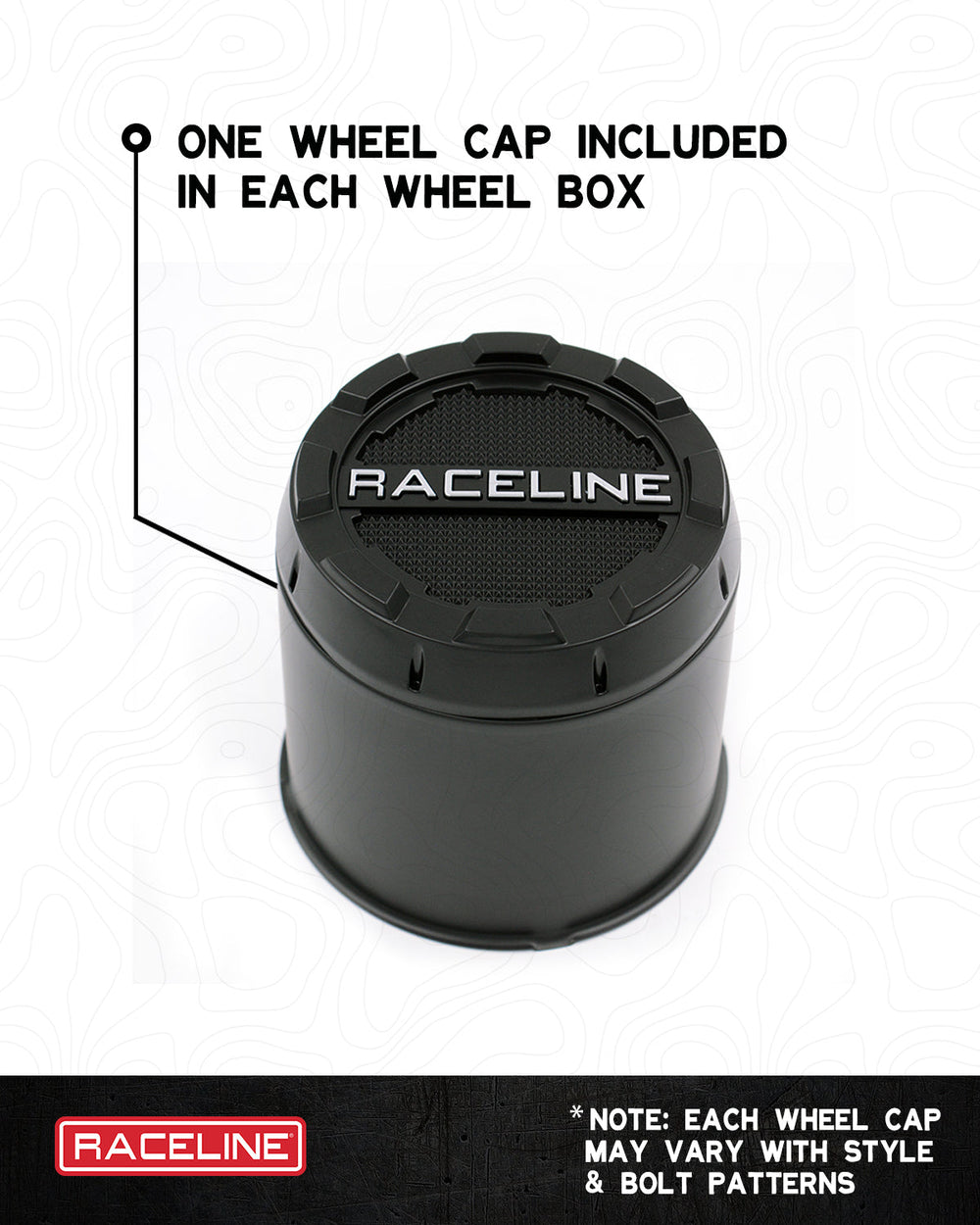 • Black-Out bolt on cap with contrasting embossed Raceline logo