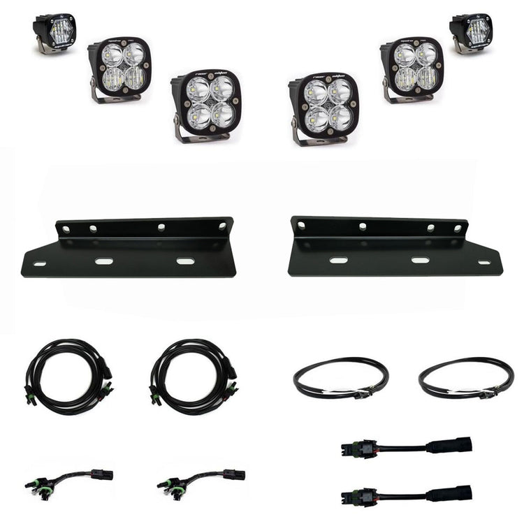 Separate your truck from the pack with the Baja Designs 2021 Ford Raptor Sport Fog Light Kit. This kit utilizes two Squadron Pros (4,600 lumens each), two Squadron racers (4,300 lumens each), and two S1s (2,375 lumens each).