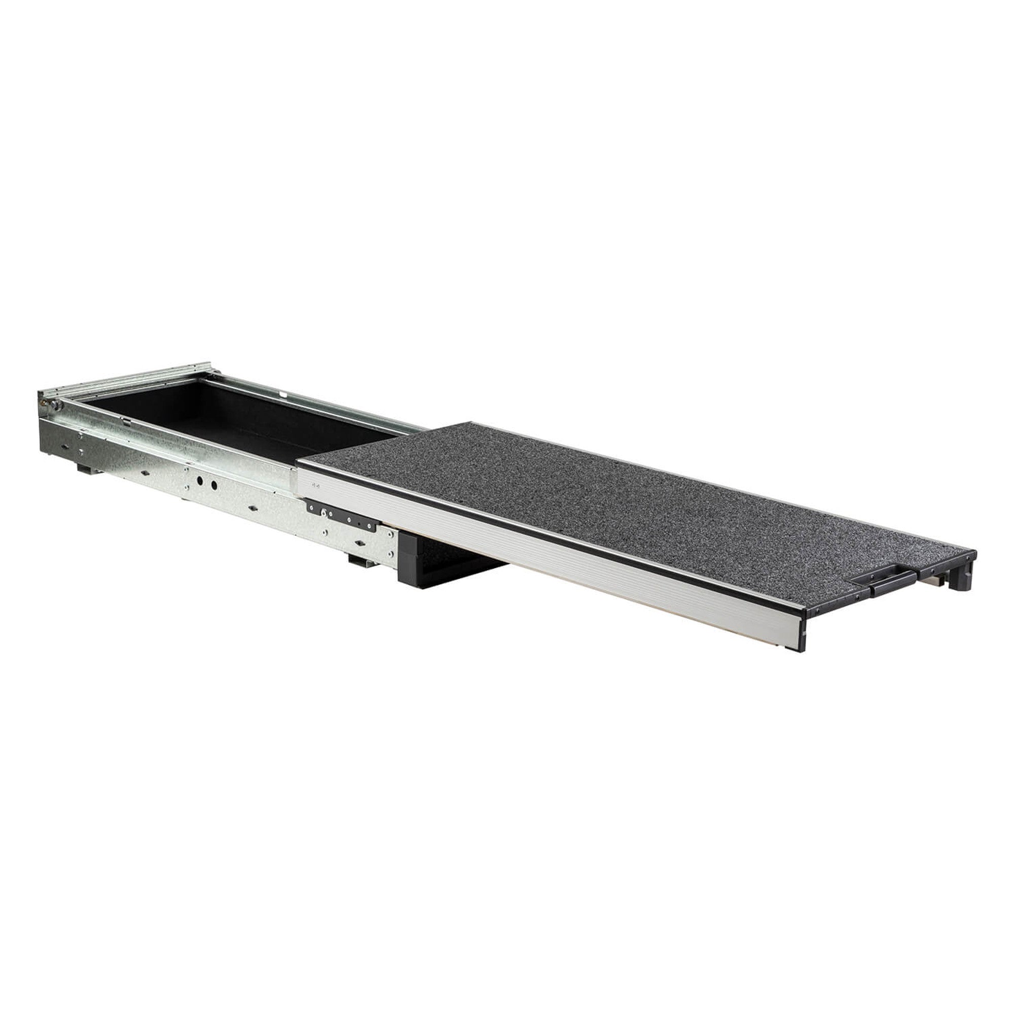- Self-locking anti roll back system locks into place at full extension, this holds the drawer from rolling closed even on inclines