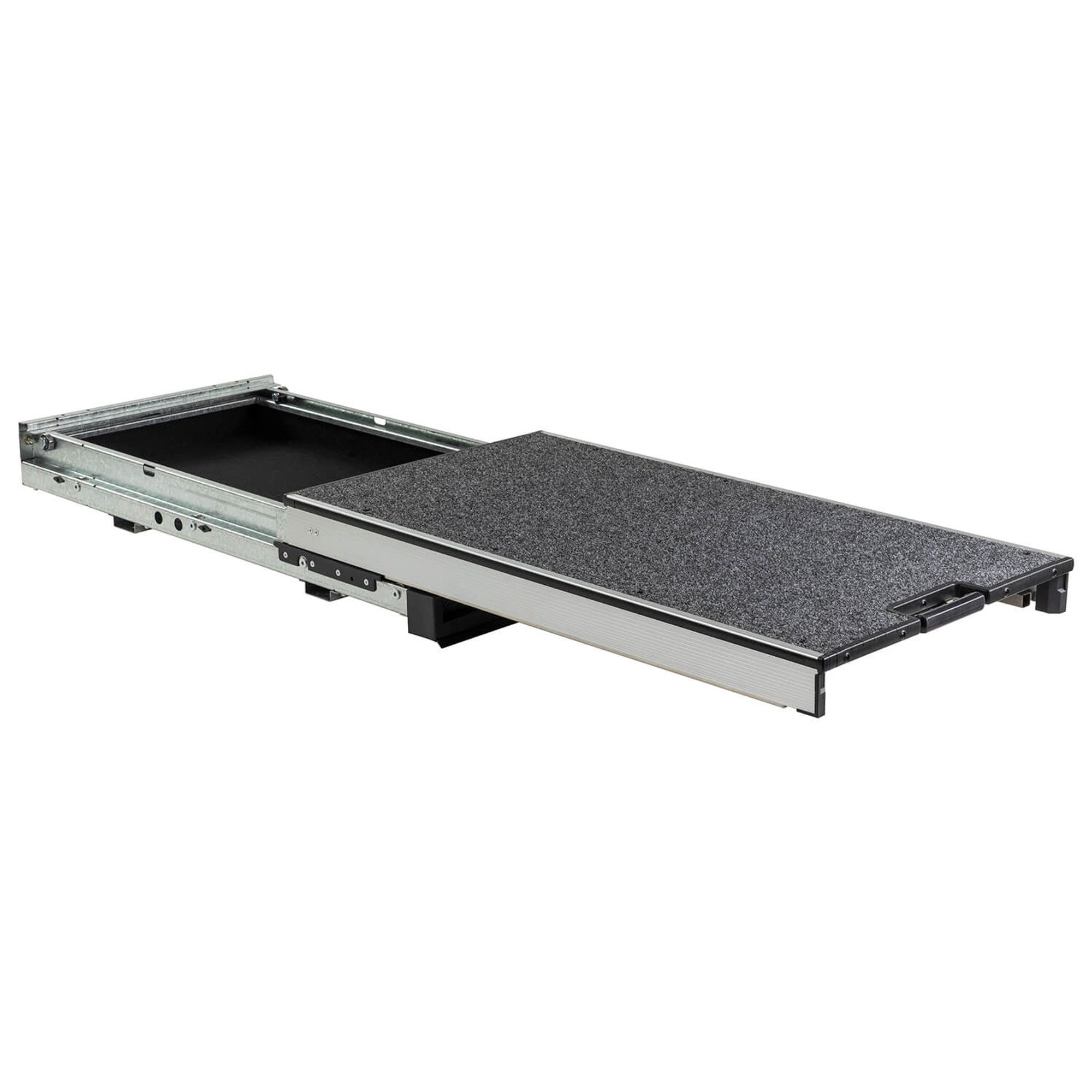 Roller Floor is a fantastic new product. The Roller Floor sits only 140 mm off the vehicle floor, enabling lower mounting and easier access to items such as fridges or tool boxes. The Roller maximizes storage space with an incorporated slide out tray. When not housing a refrigerator, the Roller Floor has a flat top thats far more convenient to sit other items on than a traditional steel fridge slide. Ever tried to sit your groceries on top of a traditional fridge slide? ;