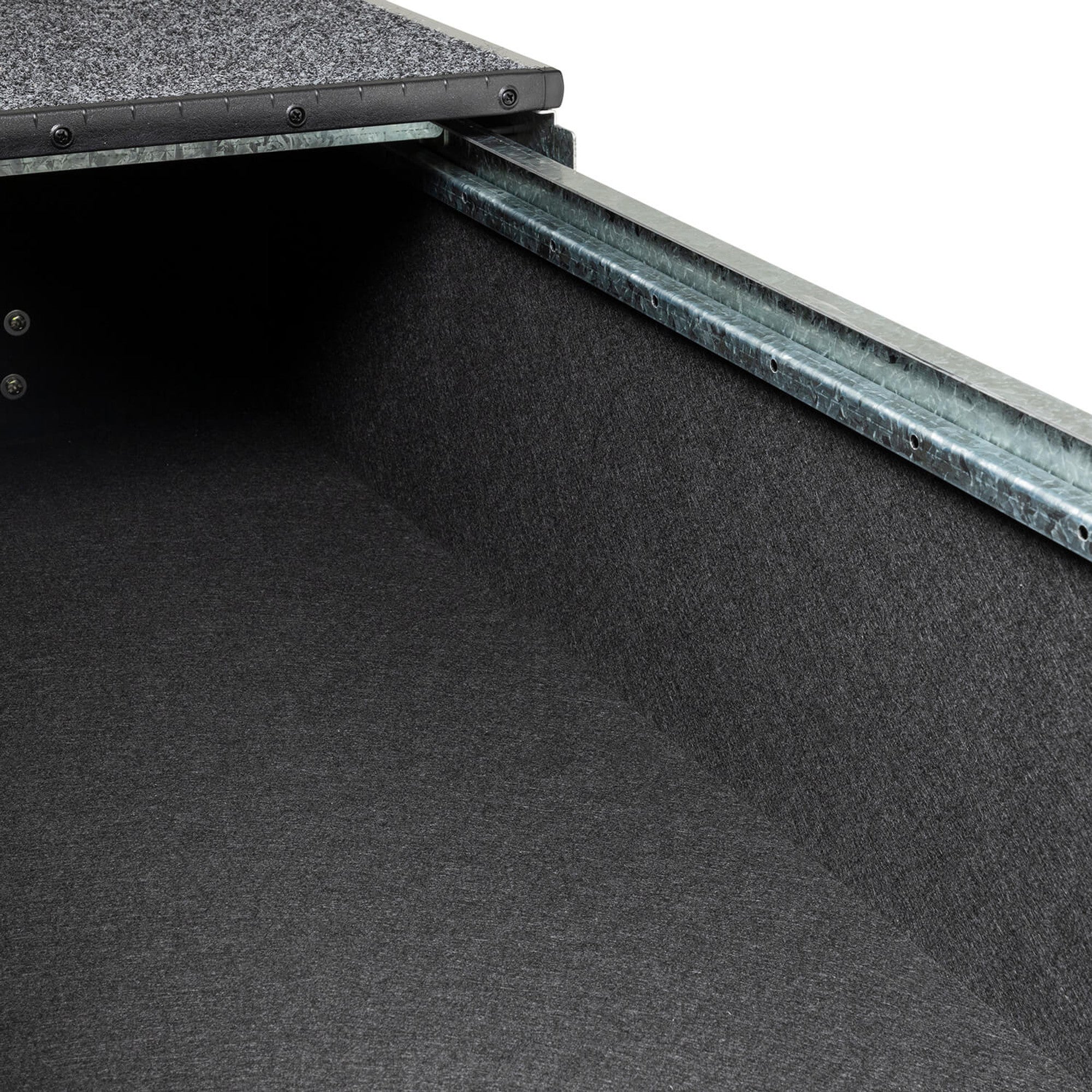 - Vehicle specific side floor kit with easy latches completes installation and provides additional storage areas within the cabin or tray