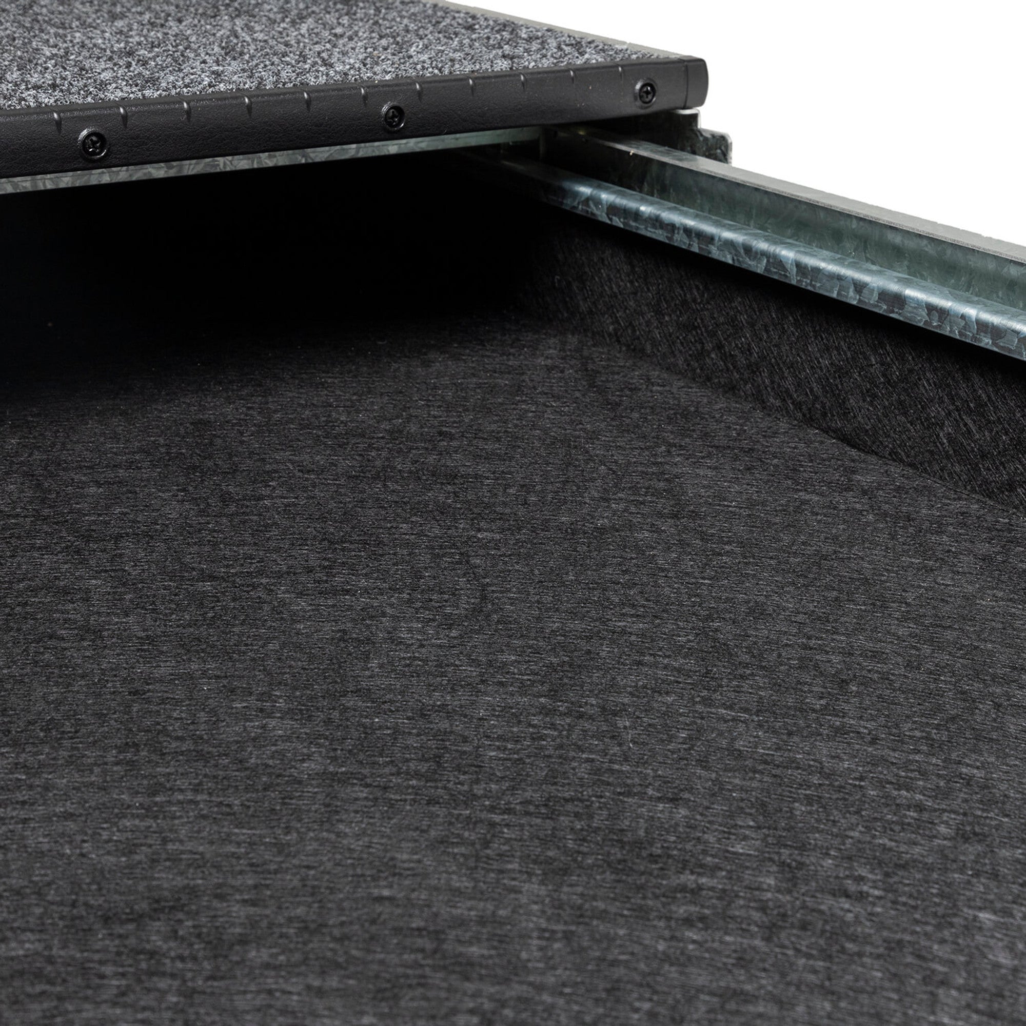 - Vehicle specific side floor kit with easy latches completes installation and provides additional storage areas within the cabin or tray