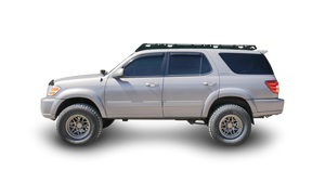 This full-length aluminum roof rack, for the 2001-2007 Toyota Sequoia, expands on our line up of tried and true rack systems. Our racks are some of the toughest on the market and are designed to get your gear to the places that matter the most. Explore more and worry less with our industry-leading ¼” thick aircraft-grade aluminum side panels and stainless steel hardware. Secure your gear by bolting into one of the 9 extrusion crossbars or by strapping it directly to the side plates. This rack is “drill-free” and requires zero modification to your vehicle.