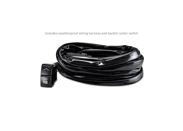 - Kit includes two lights, weatherproof wiring harness and backlit rocker switch