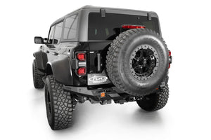 The Phantom Series Bronco Raptor Rear Bumper features a knife’s edge, low-profile design to complement the Raptor’s aggressive stance. OEM features including the parking sensors, hitch, & trailer harness/plug are retained in the design. A license plate bracket is included, which relocates the license plate up and away from the bumper along the tailgate. The factory license plate light is retained, and relocated in this new location. The contours of the Phantom enables you to run a 37-inch spare tire on the factory carrier.