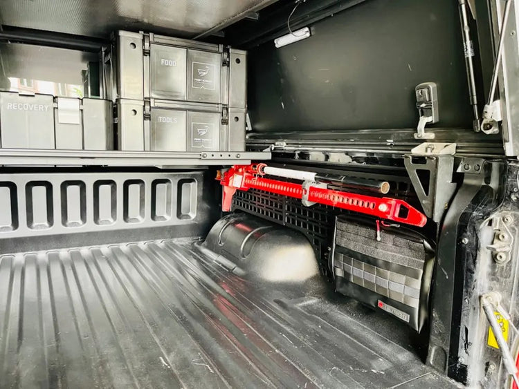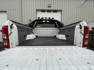 In the 2019-2023 Ranger lineup, each truck bed is equipped with threaded features for up to six tie down loops. Used along with the oval holes further up the bedside, the Ranger is very well equipped to support a full length MOLLE panel system. The BuiltRight Modular Bedside Rack System installs using these factory mounting points, without the need for modification to the vehicle. The panels provide MOLLE-compatible features for the use of MOLLE/PALS accessories in addition to universal slots for an infinite number of possibilities.