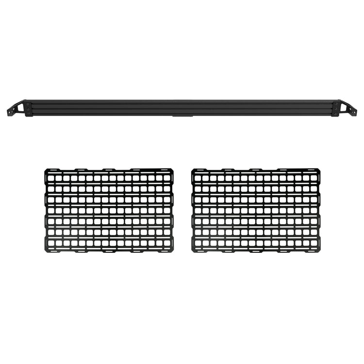 In the 2015+ F-Series lineup, each truck bed is equipped with forward tie-down points. Sadly, these don’t offer a great deal of flexibility when it comes to storing and securing a variety of items. The BuiltRight BAR installs using these same factory mounting points, without the need for modification to the vehicle. The rail is extremely useful on it's own but the optional panels provide MOLLE-compatible features for the use of MOLLE/PALS accessories in addition to universal slots for an infinite number of possibilities.