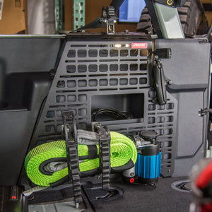These panels are much, much more than a place to hang a pouch or a strap. Manufactured from 12 gauge steel using our signature 'block and slot' pattern, they offer the strength and rigidity required to mount heavier gear and equipment.