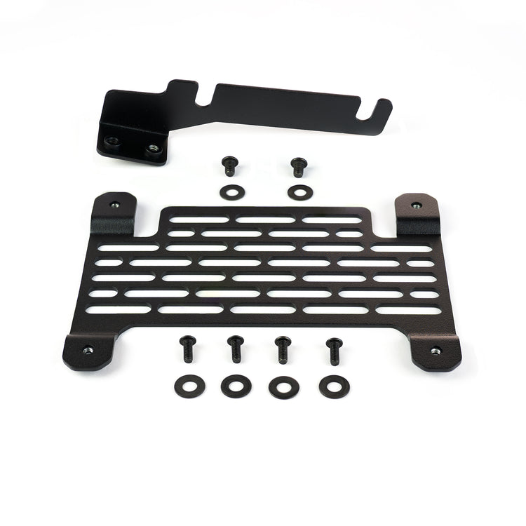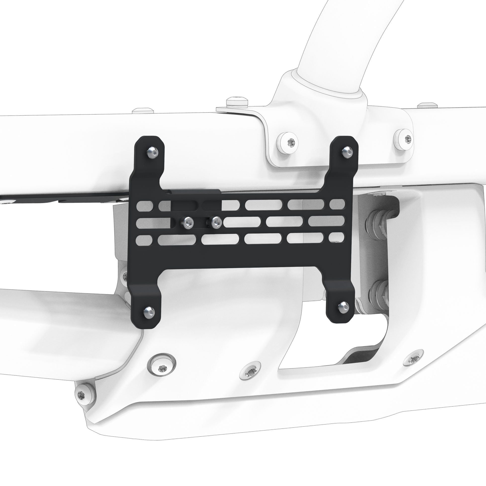 As a result, being prepared with the BuiltRight Bronco License Plate Relocation Kit shown will save your Bronco from those holes and most importantly, will help you mount your plate in a position that doesn't ruin the look of your rig! This kit is designed specifically for the Modular Steel OEM Bumper and installs easily in minutes and allows angle adjustment as well as vertical and horizontal adjustment.