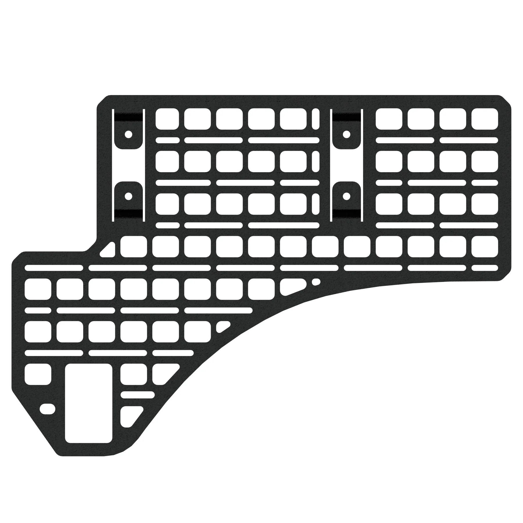In the 5th generation 2019 - 2021 RAM lineup, each truck bed is equipped with a series of small holes in the bedside, meant to support an OEM/Mopar Utility Rail System. Used along with the holes near the tie down loops at the front and rear, the 5th gen RAM is very well equipped to support a full length MOLLE panel system. The BuiltRight Modular Bedside Rack System installs using these factory mounting points and doesn't prevent the use of the Mopar Utility Rail. The panels provide MOLLE-compatible features for the use of MOLLE/PALS accessories in addition to universal slots for an infinite number of possibilities.