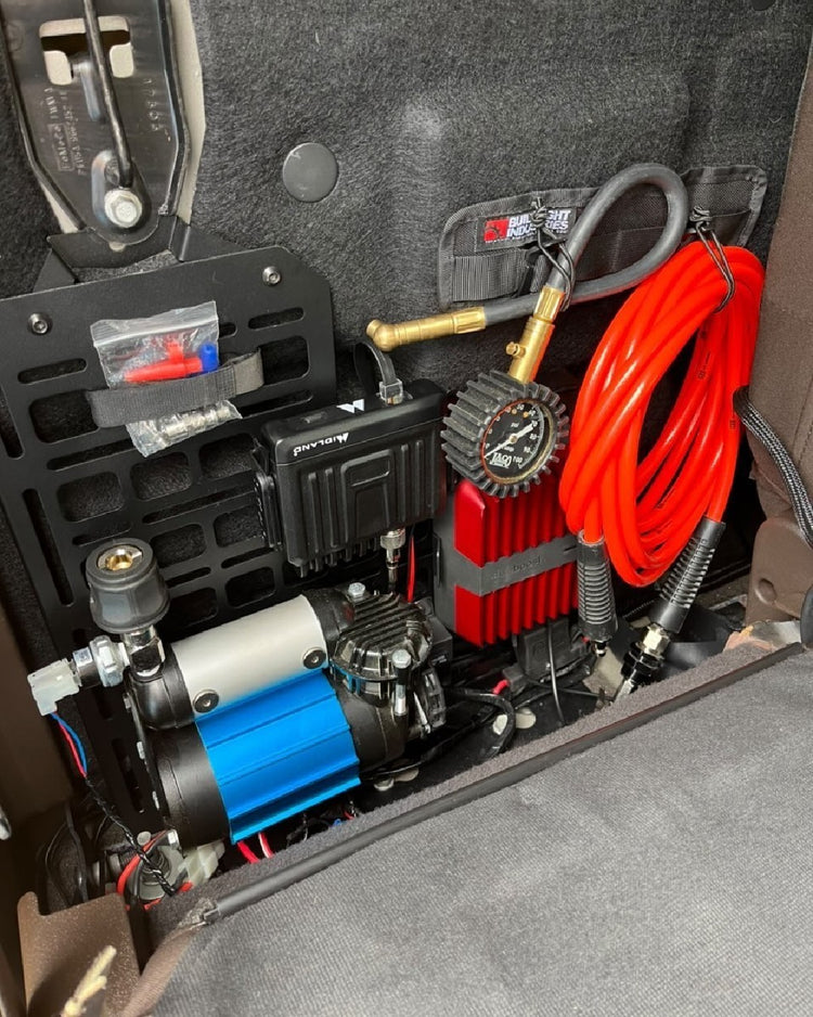 Fitment Note: Factory jack must be relocated from behind the rear passenger seat.
