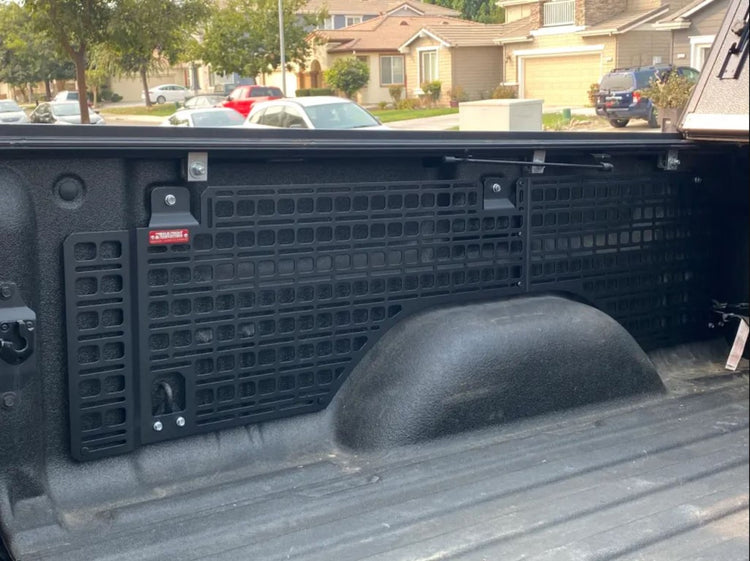 In the 2007-2018 GMC/Chevrolet lineup, each truck bed is equipped with three oval shaped holes in the bedside. Used along with the tie down loops near the front and rear, the Silverado and Sierra is very well equipped to support a full length MOLLE panel system. The BuiltRight Modular Bedside Rack System installs using these factory mounting points, without the need for modification to the vehicle. The panels provide MOLLE-compatible features for the use of MOLLE/PALS accessories in addition to universal slots for an infinite number of possibilities.