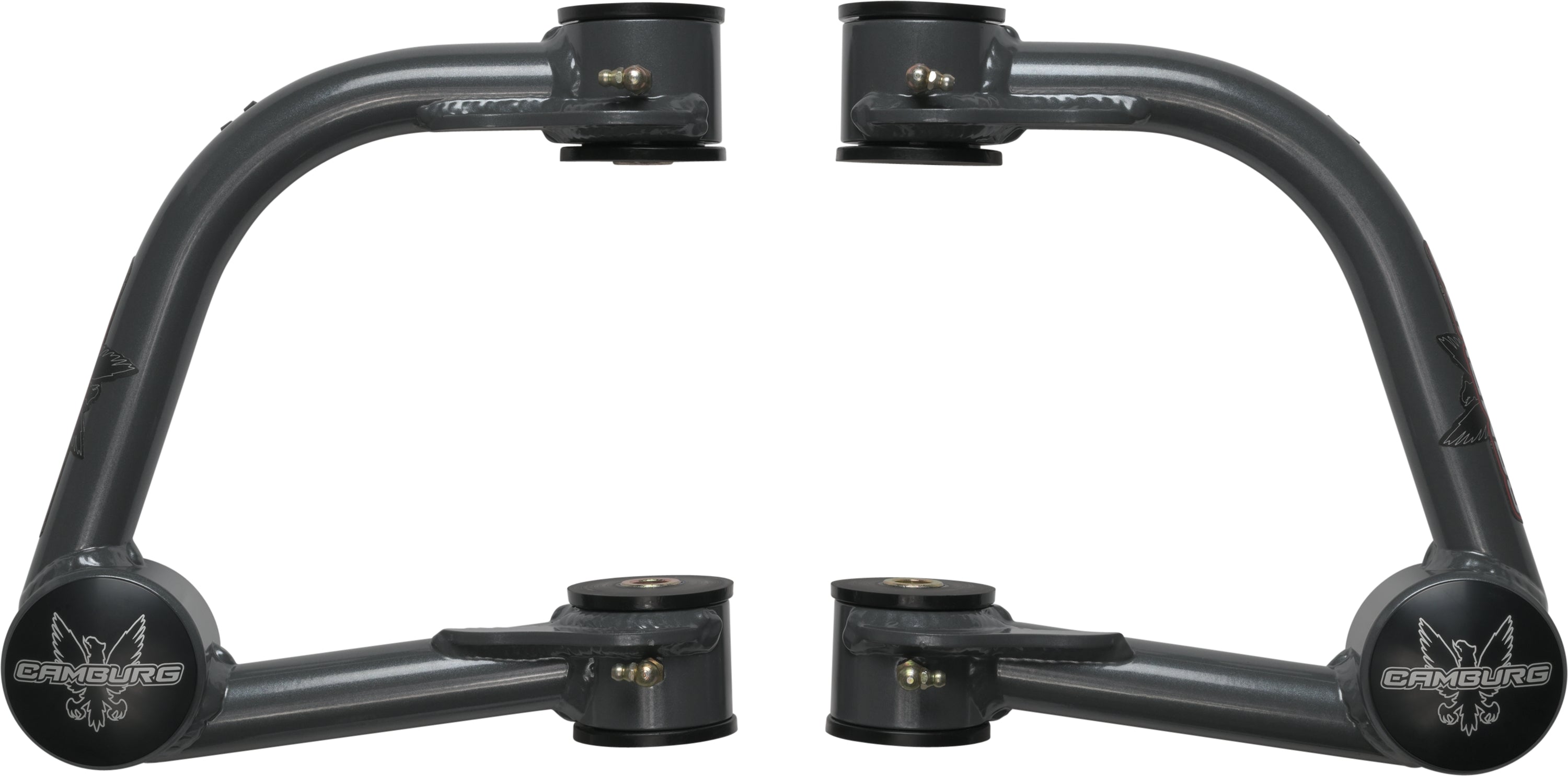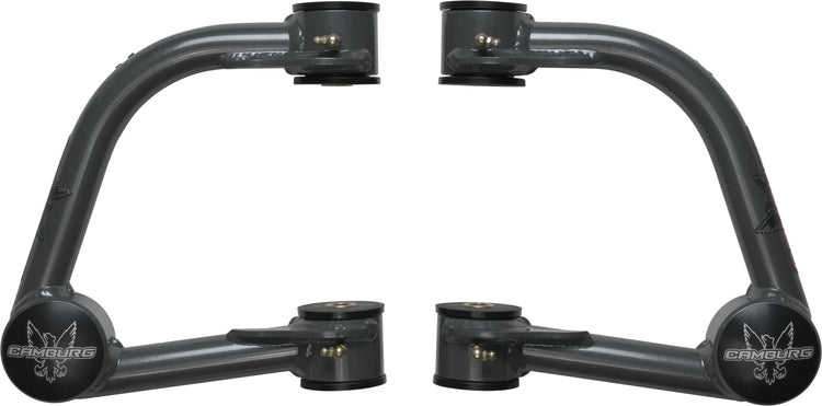The Camburg upper arms are designed to improve the performance and durability of your truck's suspension. They feature a larger 1.25 uni-ball bearing, which increases wheel travel and provides greater strength under extreme conditions. The arms also incorporate a billet aluminum cover to protect the uni-ball from dirt and contaminants. With CAD/CAM engineering and precision manufacturing, these arms are made to strict standards. They correct camber and caster, eliminate weak factory ball-joints, and come with polyurethane frame pivot bushings with grease-able zerk fittings. The arms are made in the USA and designed for 1-3" of lift. They include uniball spacers for both aluminum and steel OEM knuckles. Please note that they are compatible with US model trucks only.