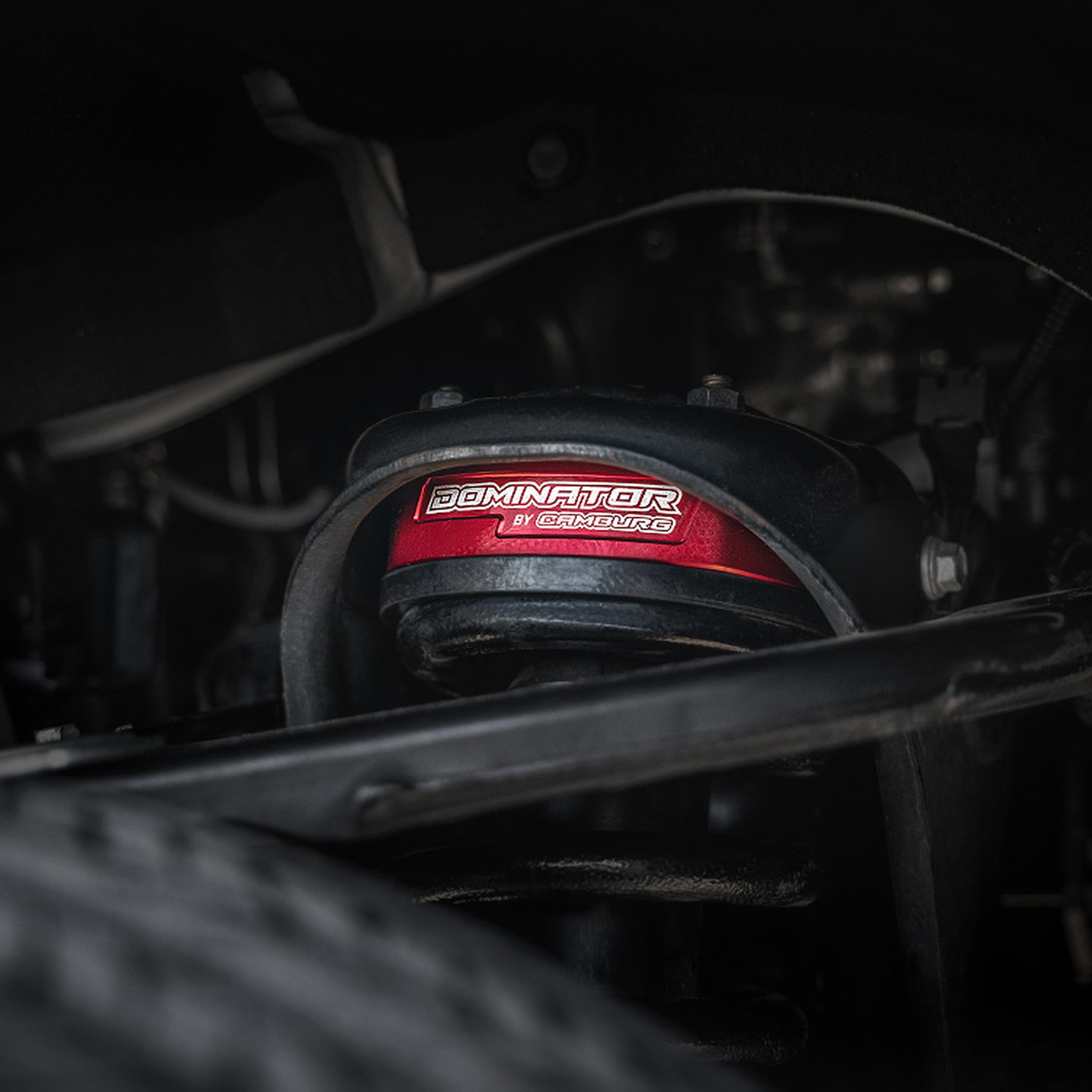 Camburg's Dominator Preload System is a game-changer in the leveling suspension market. It replaces the top hat of OE shocks with a one-piece billet aluminum design that not only preloads the coil spring but also provides added lift. This innovative system ensures that suspension, steering, and driveline components operate within OE working limitations, preventing wear and failures. The added lift and preload allow for larger tires, increasing ground clearance and improving approach angles. It also offers better bottoming control and minimizes front end dive and body roll while maintaining a plush ride. CNC machined from aerospace 6061-T6 billet aluminum, red anodized, and laser-etched, the Dominator Preload System is a high-quality product. It includes all necessary hardware for a hassle-free installation and is suitable for both seasoned off-road enthusiasts and weekend warriors. Upgrade your stock vehicle for your next off-road adventure with Camburg's Dominator Preload System.