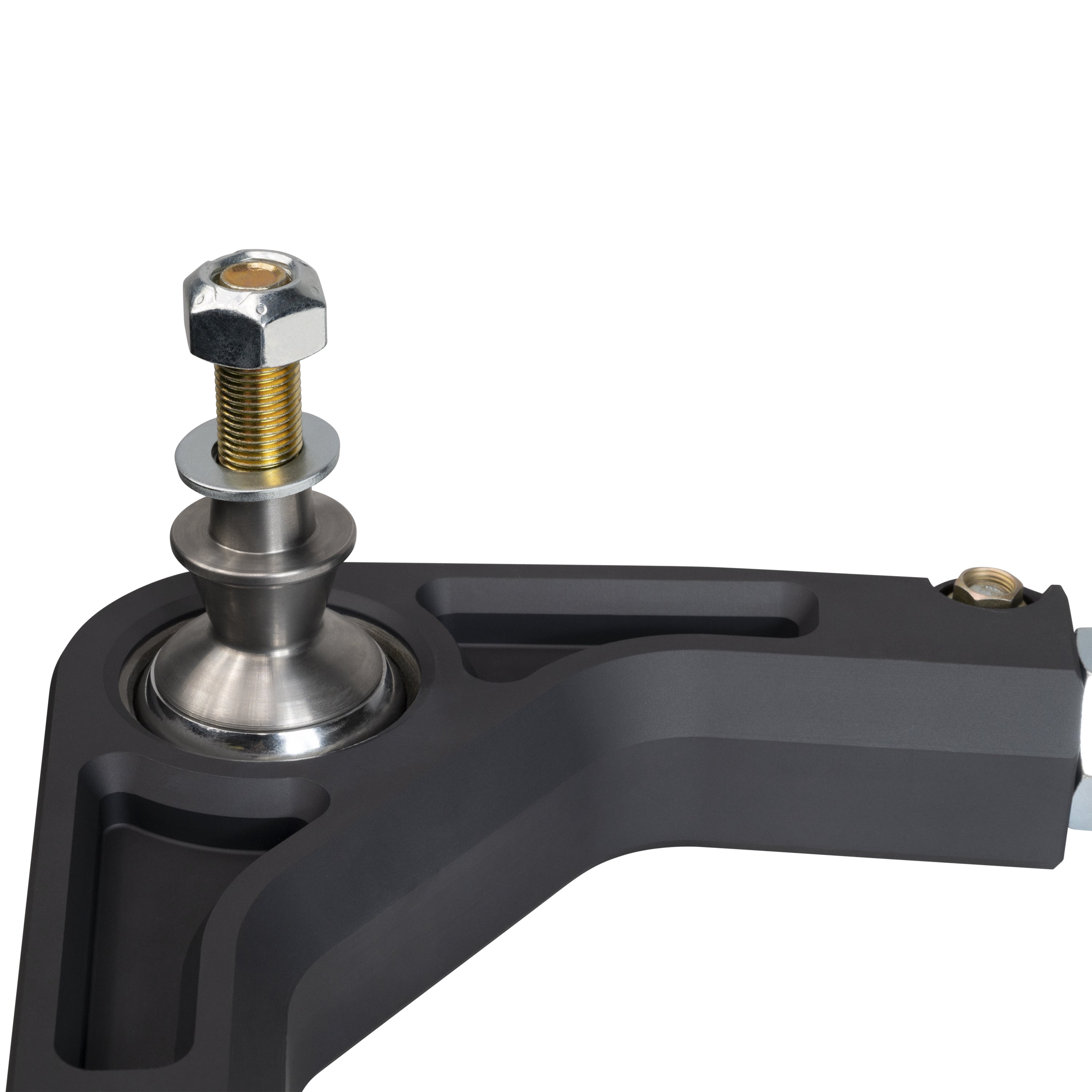 These arms are meticulously designed and crafted using CAD and CNC machining. They are made from aerospace quality 6061 billet aluminum and undergo bead blasting, Type II anodizing, and laser etching for a sleek gun metal gray finish. The arms feature a larger FK 1.25" uniball with a PTFE liner for increased strength and misalignment, allowing for maximum wheel travel. They are made in the USA and are superior to cheaper imports. The uniball is adapted to the spindle/knuckle using model-specific spacers made from heat-treated stainless steel. No drilling or modifications are required. The arms also utilize larger and stronger FK 7/8" chromoly heim joints for additional camber and caster adjustment. These heim joints eliminate flexing/deflection and provide zero binding under hard use and braking. The arms come with AN/Mil-spec hardware, including a single pinch bolt and secondary jam nut for secure attachment. The V2 design of these arms increases usable wheel travel, corrects camber and caster, and eliminates weak factory ball-joints. They are designed for 1-3" of lift and come with all necessary hardware for installation.