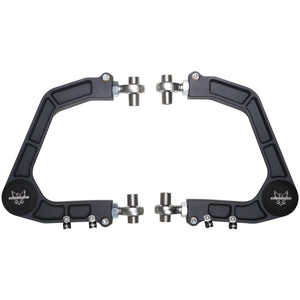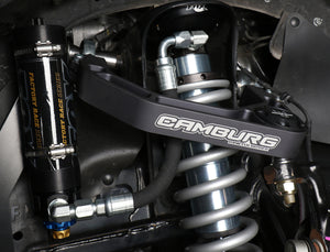 Introducing the Camburg KINETIK Series billet upper arms, the ultimate setup for your rig. These arms are meticulously designed and refined to meet our high standards. CNC machined from aerospace quality 6061 billet aluminum, they are bead blasted, Type II anodized gun metal gray, and feature our laser-etched Camburg logo. Equipped with a larger FK 1.50" uniball with a PTFE liner, these arms offer increased strength and mis-alignment for maximum wheel travel. Made in the USA, they are far superior to cheaper imports. The uniball is adapted to the spindle/knuckle using model-specific spacers machined from heat-treated stainless steel. No drilling or modifications are required. The 1.50" uniball allows for a larger and stronger 9/16" 12-point bolt with a low-profile press-on uniball cap for durability. Additional camber and caster adjustment is possible with the use of larger and stronger FK 7/8" chromoly heim joints, which also eliminate flexing/deflection under hard use and braking without binding. The arms come with AN/Mil-spec hardware, including a single pinch bolt and secondary jam nut for secure heim joint attachment. The new V2 design increases usable wheel travel, corrects camber and caster, and eliminates weak factory ball-joints. All necessary hardware is included for easy installation. Designed for 1-3" of lift, these arms also fit 2008-2022 Toyota Sequoias.