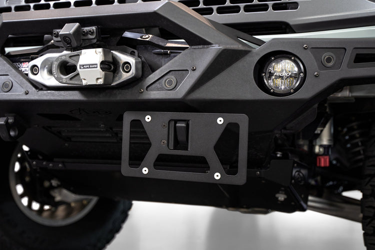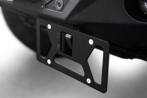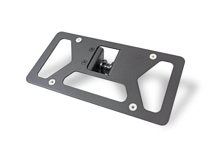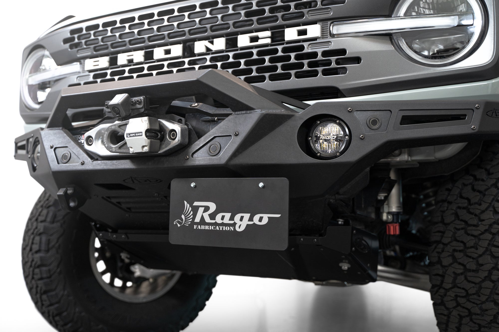 Rago Fabrication's Clevis D-Ring Mounted Front License Plate Bracket was designed to easily mount a front license plate bracket on an off-road bumper. It is also easily removable for optimal ground clearance when going off-road. If left installed while off-road, it will swivel if you strike an obstacle to help prevent damaging the mount. It is adjustable for universal clevis mount fitment, and can also be configured for different heights. The mount is finished in a durable 2-stage hammer-black powder coat, and is made in the USA.