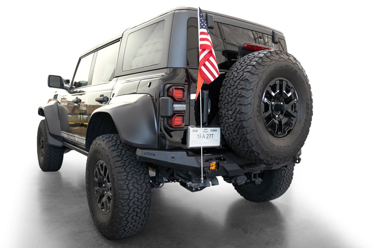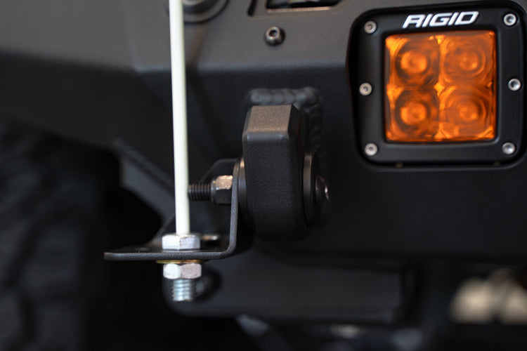 Rago Fabrication has designed a whip flag mount that enables you to mount a whip to an off-road bumper clevis d-ring mount. The mount can handle all sizes of whip flags, including lighted whips. It installs to any standard 1-inch thick Clevis D-ring mount with a 1-inch hole, and includes all necessary hardware. Constructed from American steel, it is then sandblasted and finished in a durable 2-stage hammer black powder coat finish. Installation is a simple bolt-on process, and these are made with pride in the USA.
