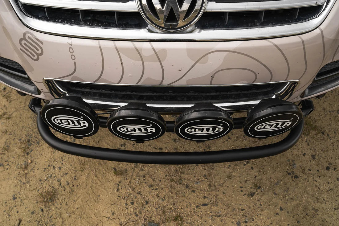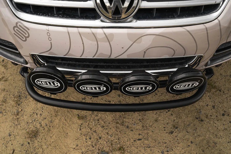 Built from 1.5" OD, .120 wall steel tubing with 4 evenly spaced light brackets. Installs in minutes using OE front tow points and transforms the front end of your car. Installation is simple; remove factory tow hook cover, screw on our proprietary mounting bungs, and install light bar with 2 bolts.