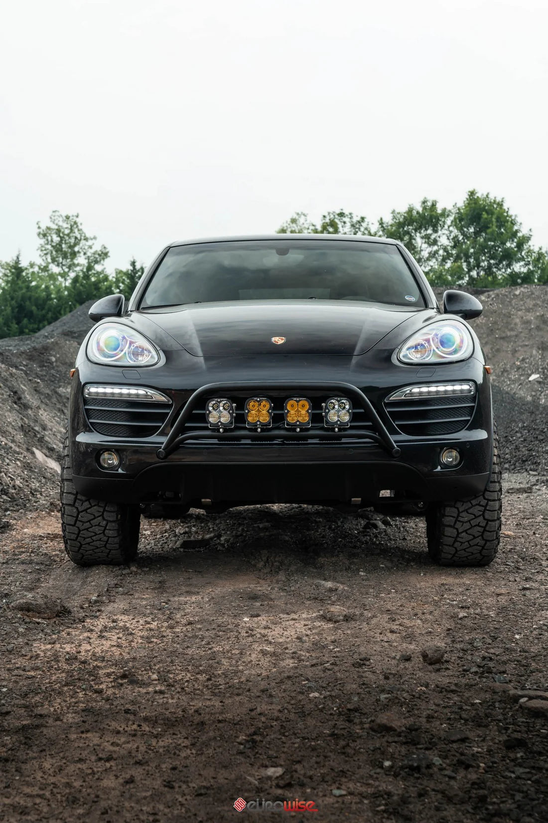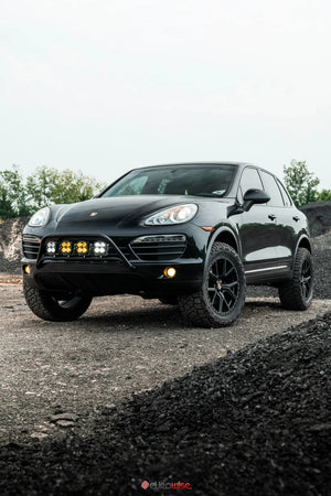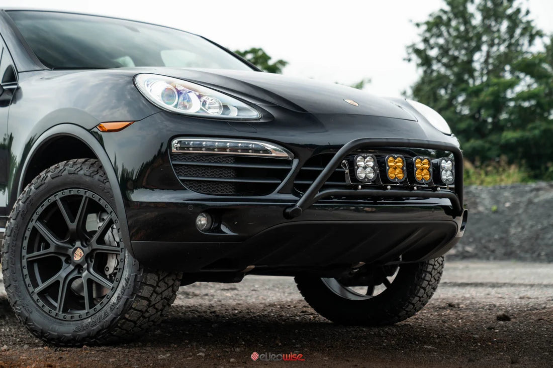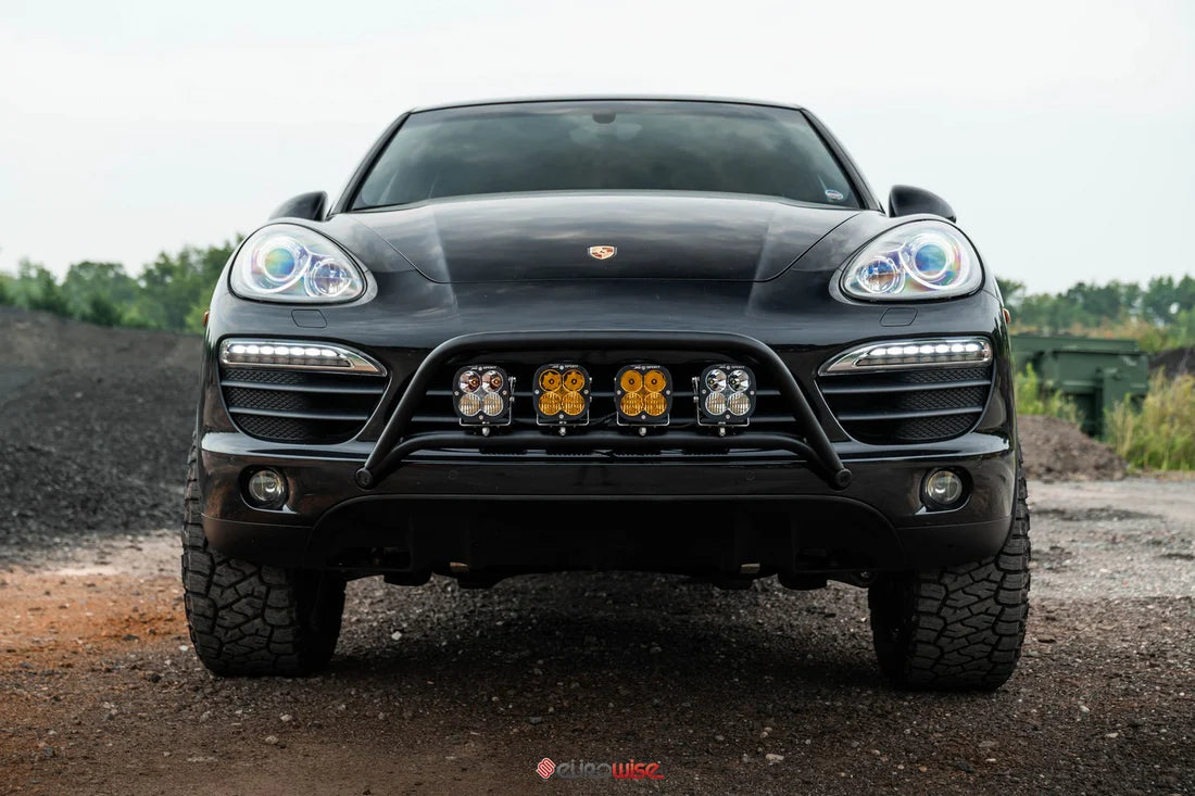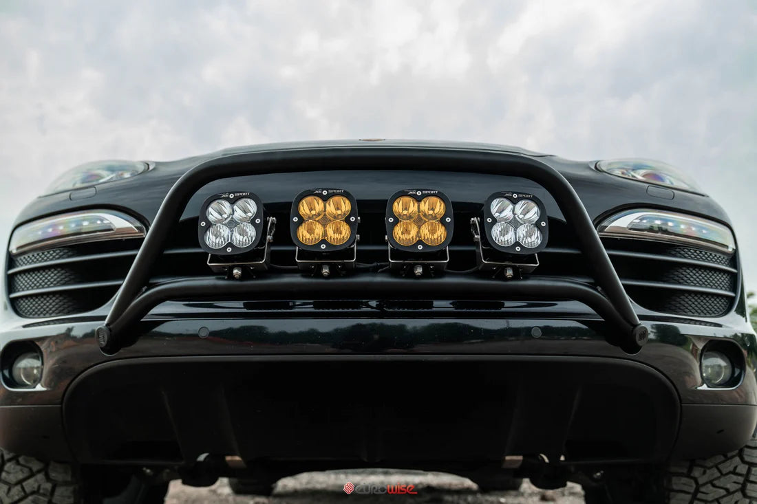 Built from 1.5" OD, .120 wall steel tubing with 4 evenly spaced light brackets. Installs in minutes using OE front tow points and transforms the front end of your car. Installation is simple; remove factory tow hook cover, screw on our proprietary mounting bungs, and install light bar with 2 bolts.