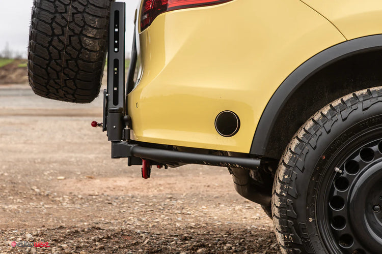 OEM wheels or high positive offset (50mm +/- 10mm) wheels will require a wheel spacer on the spare in order to clear the rear hatch. We recommend 15-20mm.