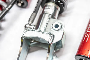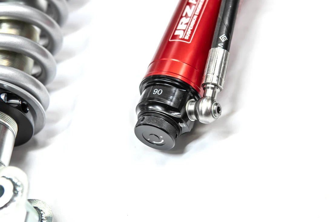 JRZ Coilovers can be built to order with custom specifications for height, travel, and spring rate. Standard specification is a 2-3” lift with 7” travel. Spring rates will be determined after order is placed based on vehicle and use philosophy.