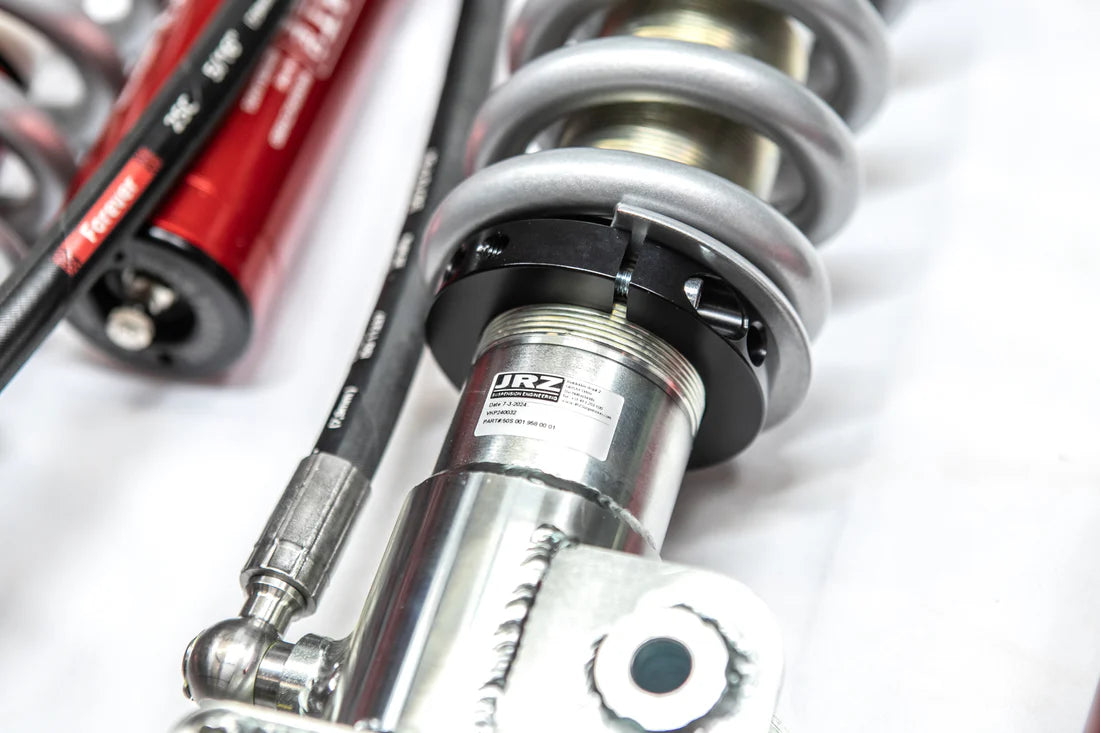 JRZ struts have high lifting force due to nitrogen pressures, and finely tuned compression damping control due to large-diameter rods and frequency response blow off valves. This results in improved platform stability during both high and low speed compression as well as cornering and braking - all without having to sacrifice comfort, and without the need for a hydraulic bump stop.