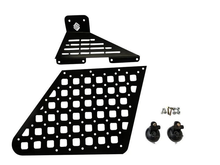 The Touareg rear window Molle panel is designed to offer additional exterior storage for fuel or other accessories. Comes coated in satin black powder coat for a durable finish.