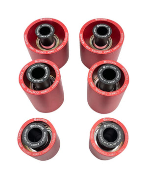 Quality Materials. We start with high quality FK PTFE-lined bearings with internal retaining rings, and install them in CNC machined 6061 aluminum housings. Our misalignment spacers are built with 304 stainless steel for optimum strength, and all fixed parts are anodized for a lifetime of hard use and abuse. Our bearing kits are fully rebuildable, and do not require the cup to be removed to do so.
