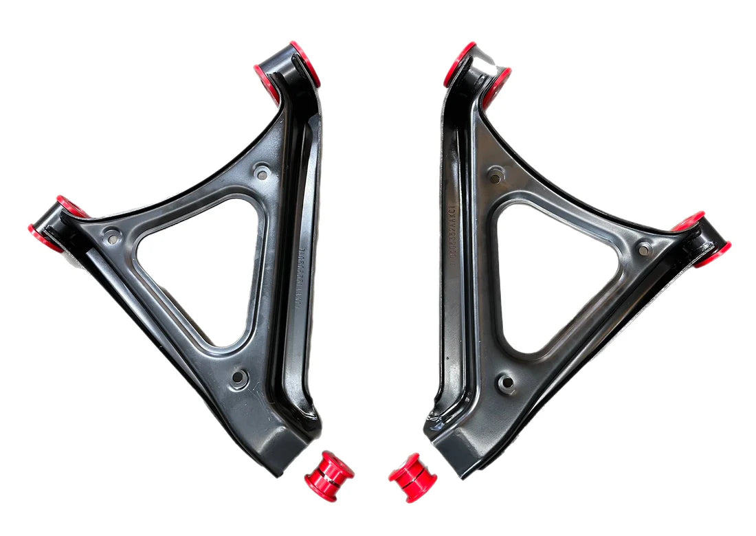 Premium Lubricants. Our Polyurethane Rear Lower Control Arms ship fully assembled and pre-lubricated with premium lube. We also include premium lube in the box, to lubricate the bushing faces during install.
