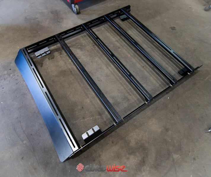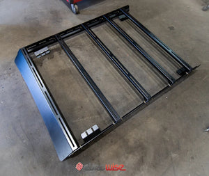 We've built these racks to withstand over the roof's capabilities, they can hold over 500 lbs. when using the proper rail setup. Constructed of 7 gauge steel for excellent strength and rigidity then powder coated with UV stable automotive grade powder coating. Roof rack is approximately 59" x 46"