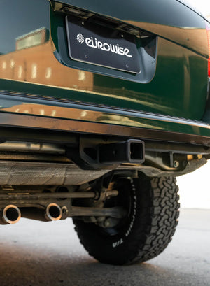 Eurowise high clearance hitch. Over 3” higher than oem position hitch. Made from heavy carbon steel and powder coated for long lasting quality. Tested over 8,000 lbs towing. Has built in 3/4” recovery points standard