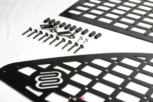 The storage panel was designed to withstand the toughest trails keeping your items secure. You can attach your trail gear using a variety of attachment systems including a variety of tactical solutions. This system is easy to install and does require some minor drilling of screws into your factory panels.