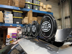 We've designed this bracket to mount Hella, KC, and other round lights that stand tall once mounted, so this bracket is designed to drop the mounting height to reduce wind noise and clear Roof Top Tents if equipped.
