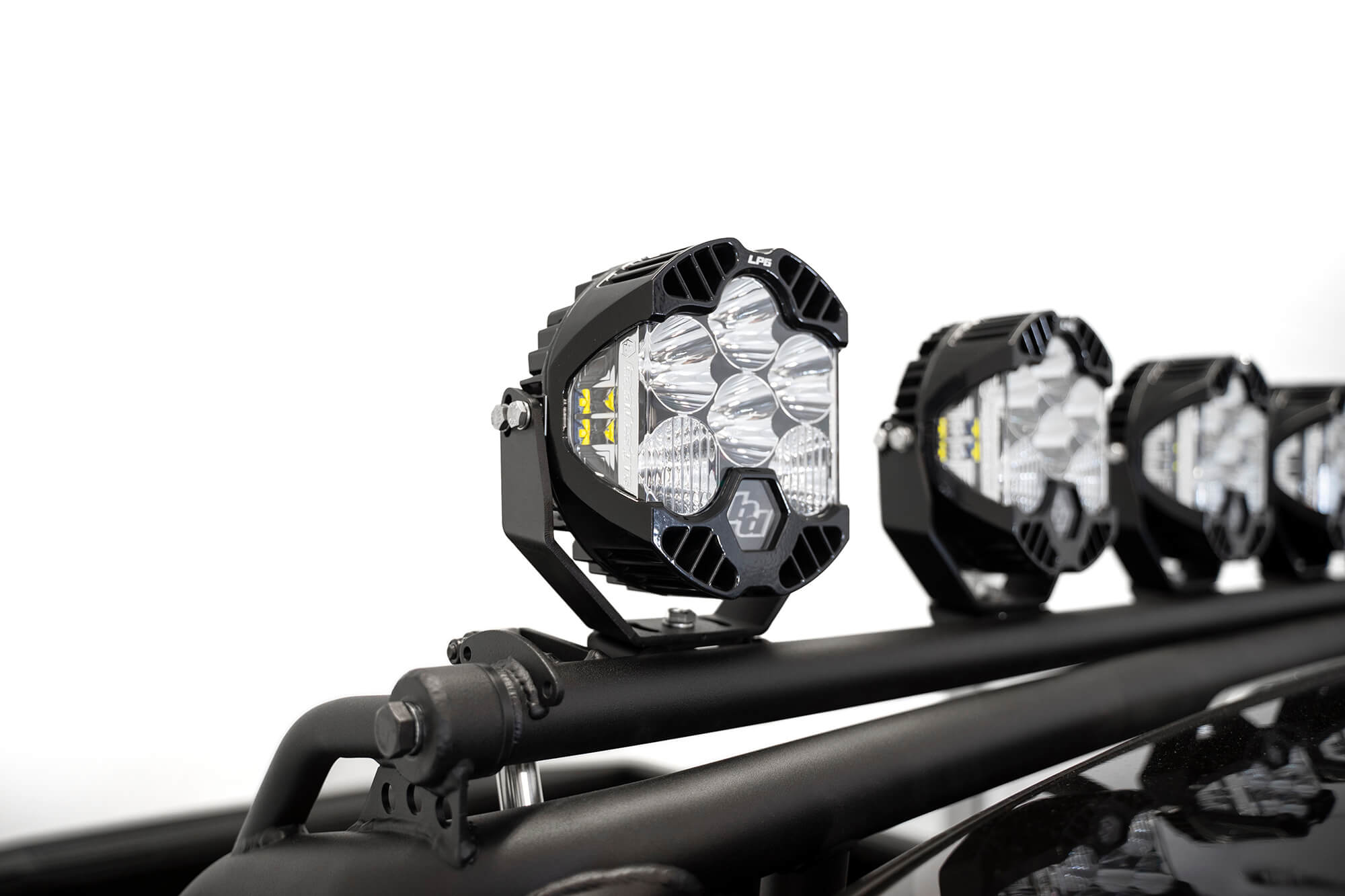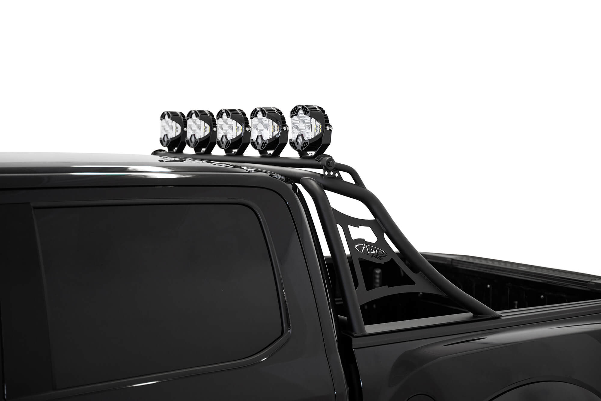Looking for a way to take your Ford F-150 or Raptor to the next level? Check out the ADD PRO Chase Rack. This sleek, low-profile rack is designed to perfectly complement the look of your truck. The electronically actuated light hoop lets you tuck your lights away when not in use, so you never have to worry about added height becoming a problem. The light hoop has five individual mounts that can be used for a variety of round lights, such as Baja Designs LP6 or LP9s and RIGID 360 Series 6 Inch Lights. Included brackets allow the use of a 50-inch straight light bar in place of the round lights. The clamp mounting system makes sure there are no truck bed modifications needed to mount the rack. Hammer black powder coat is used for a lasting finish. Take your F-150 or Raptor to the next level with the Addictive Desert Designs PRO Chase Rack. As always, this is fully bolt-on and Made in the USA.