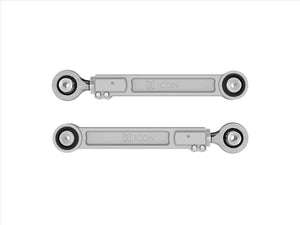 ICON’s billet aluminum rear upper link arms for the 2022-2023 Toyota Tundra, 2023 Toyota Sequoia, and 2024 Toyota Tacoma are a significant upgrade over the factory units due to increases in strength, adjustability, and performance. These links are made from CNC machined 6061 aluminum in-house and anodized for corrosion resistance, providing a major improvement over the construction of the stock units. This rear upper link arm kit features PTFE-lined FK rod ends for increased suspension articulation, reduced deflection, and on-vehicle link arm length adjustability using ICON’s double adjuster system. Additionally, multi durometer bushings are installed that allow for noise free operation and maximum angularity without the need for periodic greasing and/or other maintenance. The quality rod ends and bushings featured in these link arms allow the vehicle’s suspension to function as intended, without the bushing bind that limits the vehicle in stock form. After the design phase was completed ICON engineers put these parts through the “ICON1K” real-world test cycle for a final stamp of approval.