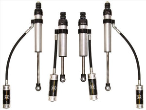 The 1998 - 2007 Toyota Land Cruiser 100 Series has a compact torsion bar IFS front suspension, and requires a lot of work to be done in a small space. When lift is added via torsion bar adjustment there is even more spring energy that must be absorbed to adequately control the vehicle. Keeping this in mind, those looking to achieve 0-3" of lift (aftermarket upper control required) can install the Stage 2 shock system for maximum suspension travel and performance. ICON engineers have developed a unique 2.5” diameter shock system, with remote reservoirs front and rear, that can handle these demands. 2.5 Aluminum Series reservoir shocks front and rear ensure optimum performance by increasing the duration of consistent damping regardless of situation, keeping the shocks at a cooler operating temperature during extended off-road use. With a lower spherical rod end bearing and heavy-duty upper stem bushings, deflection is kept to a minimum for precise control of the suspension even under high loads.