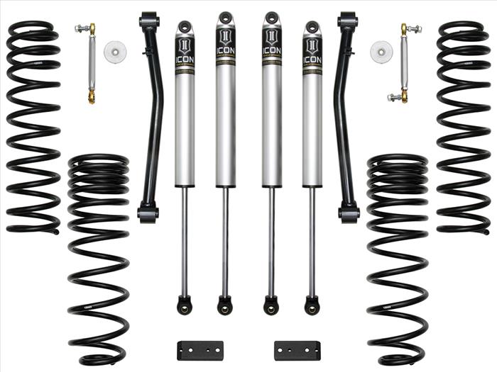 The Stage 3 ICON 2.5” Suspension System for the Jeep Gladiator is the ideal setup for significantly improving on-road ride quality for the daily driven application that will see occasional moderate off-road use. This complete suspension system features 2.0 Aluminum Series shocks, 2.5” lift dual-rate front coil springs, a tubular steel fixed front lower link kit, billet front sway bar links, a triple-rate rear coil spring kit, a rear sway bar relocation kit, and all necessary hardware for install. This system provides an increase of over 30% front and 20% rear wheel travel and was designed around the use of a 35” tire. For those looking to run a 37” tire this can be achieved with the ICON Jeep JT Bump Stop Spacer Kit (Part #22071).