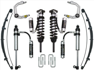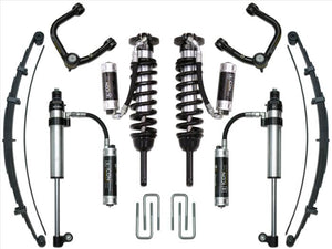 ICON Vehicle Dynamics 2005-2023 Toyota Tacoma suspension systems are designed with maximum performance and the serious driver in mind. Throughout the development of these systems ICON engineers’ primary focus is to increase wheel travel and damping ability, which translates into outstanding vehicle control and ride quality both on and off-road. This Stage 8 system goes a step further in delivering ICON performance to the Tacoma with the addition of rear suspension components that include an ICON RXT multi-rate leaf spring and a unique RXT-specific 2.5 Aluminum Series shock.
