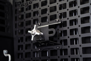 Rago Fabrications Universal Hi-Lift Jack Mounts is designed for versatile mounting options for a Hi-Lift style jack. The included stainless steel hardware can be used to mount these on molle panels, truck beds, trailers, garage walls, etc. Fitment has been confirmed for ADD Offroad molle panel systems. Constructed from ⅛-inch American steel, they are then sandblasted and finished in a durable 2-stage hammer black powder coat. Installation is a bolt-on process, but may require drilling depending on your application. All Rago Fabrication products are made in the USA.
