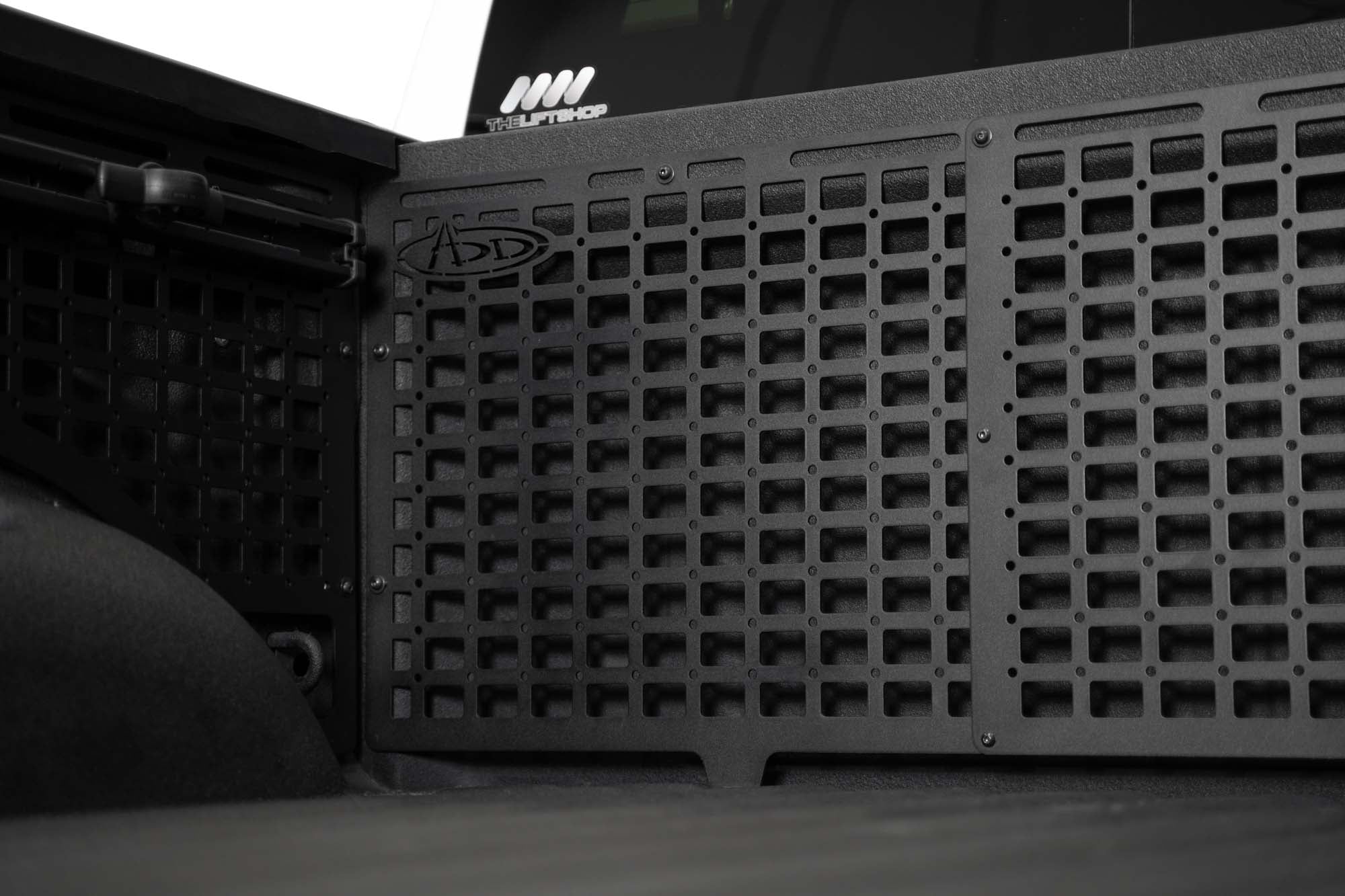 Manufactured from American steel, these panels maximize cargo storage by utilizing vertical storage space to keep the 1500 truck bed free for larger loads. The panels are ideal for storing gear such as shovels, hi-lift jacks, fluid tanks, recovery gear, and more. Our panels are finished with a hammer black powder coat, complementing the factory styling and providing resistance to the elements. Multiple mounting points ensure the panels are rigid and secure, yet are easily removable if needed. As always, these are Made in America.