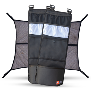 Want to take your Rambler storage to the next level? Then this premium storage kit is for you. A mesh overhead net for easy stuffing storage and two hanging panels with a variety of pockets to store things overnight. There is even a place to hold your drink.