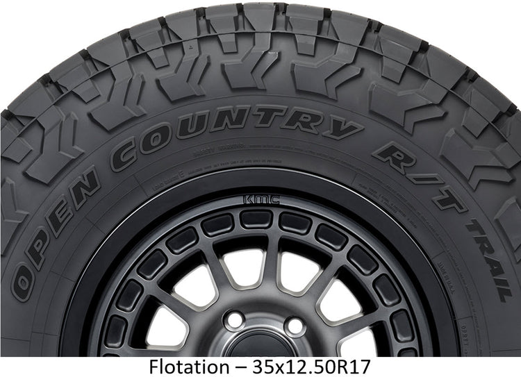 The Open Country R/T Trail rugged terrain tire delivers better off-road grip than a traditional all-terrain tire, most evident in the sand, mud, and deep snow. The extra-thick shoulder and sidewall lugs dig into deep and soft terrain. This thickness also provides impact and puncture resistance. With the off-road chops to perform in varying terrain, the Open Country R/T Trail is designed for light-truck and SUV owners who want more off-road capability than a traditional all-terrain, without the noise and harshness of a dedicated mud tire.