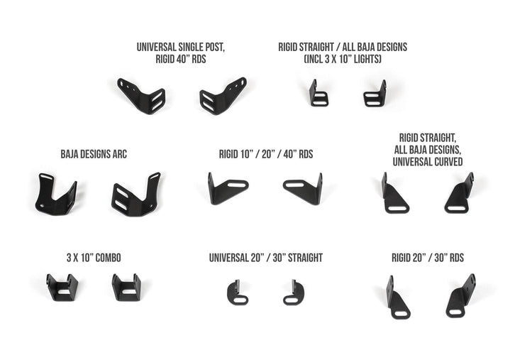 Our Universal Light Mount Kit for use with select Addictive Desert Design's bumpers allows multiple lighting options from different brands and sizes. Customize your lighting set up the way you want.